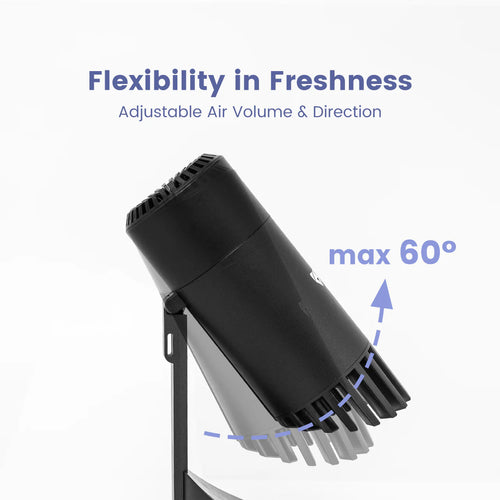 Operate effortlessly with top touch buttons and bottom toggle switches. Humanized design with adjustable angles max to 60°, enabling you to enjoy clean & fresh air everywhere.