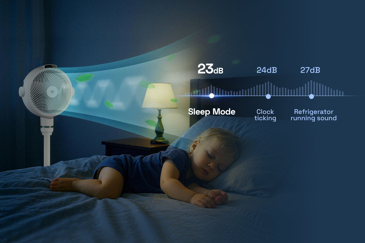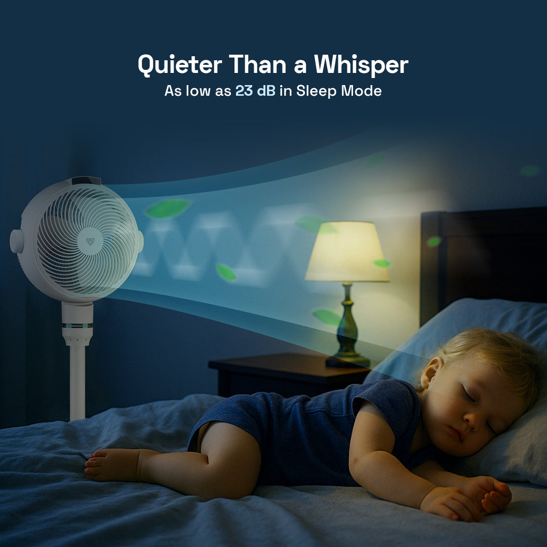 SF3 delivers smooth, gentle airflow that circulates evenly throughout your space — whisper-quiet, comfortable, and perfect for sleep, work, or relaxation.