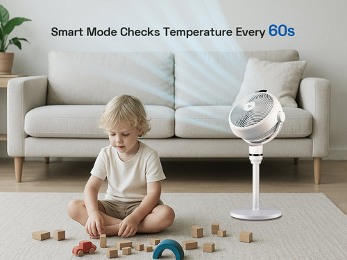 In Smart Mode, SF3 monitors the room temperature every 60 seconds and automatically adjusts the fan speed to maintain optimal comfort.