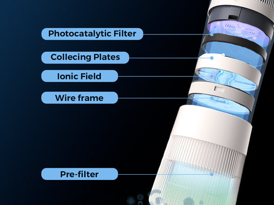 The pre-filter and collecting plates are washable, which helps reduce maintenance and extend the life of the filtration system. Regular cleaning helps maintain optimal performance.